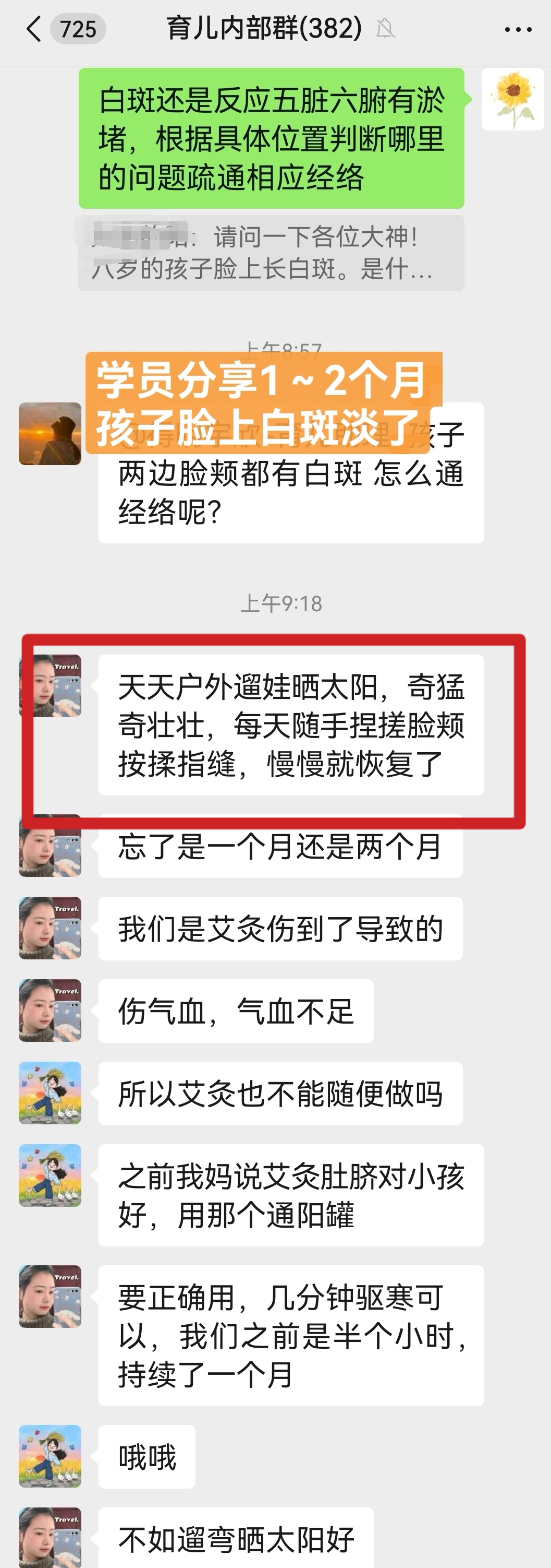 【育儿学习群反馈】学员反馈用大千老师的育儿办法孩子脸上白斑淡化