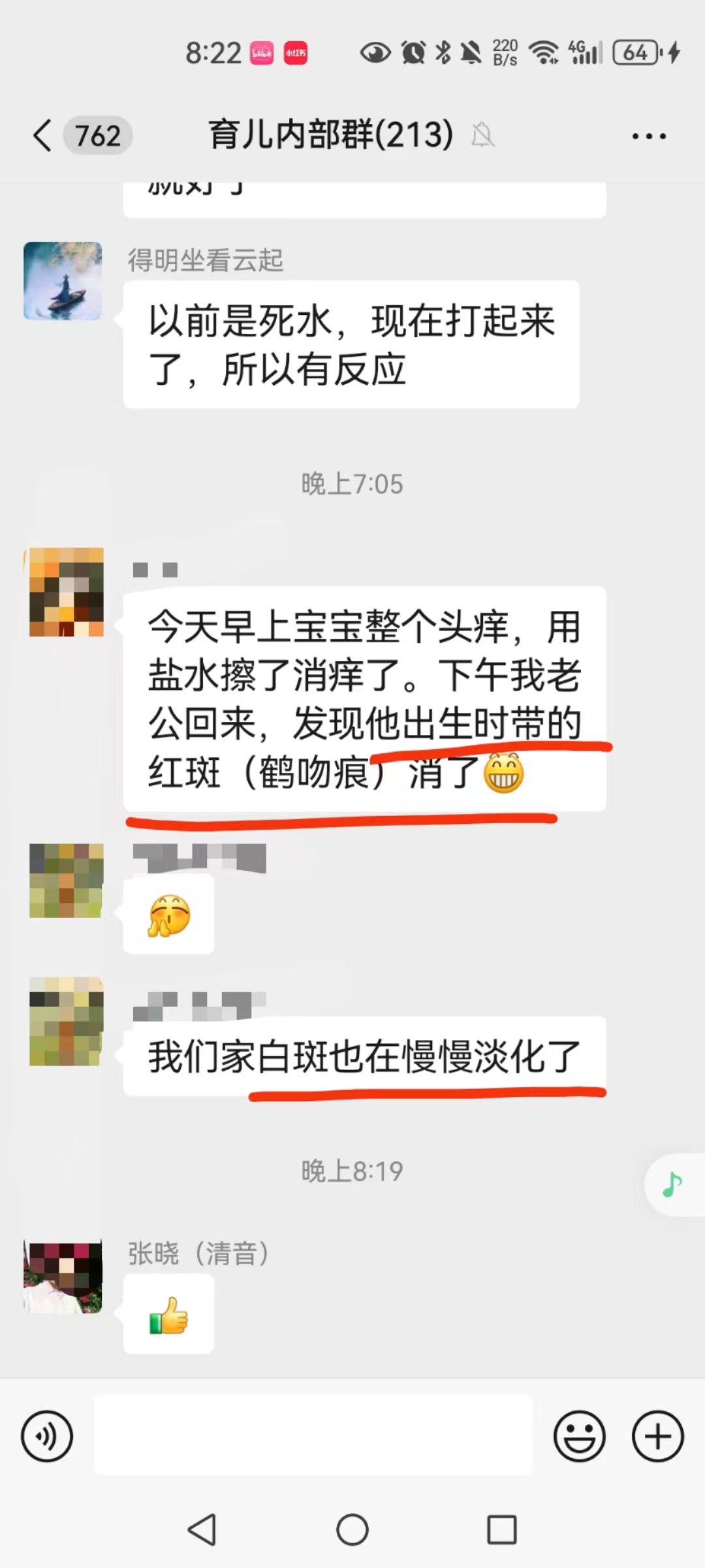 【育儿学习群反馈】学员反馈孩子头上出生时的红斑消了