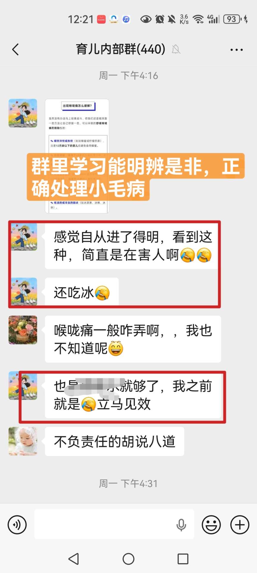 【育儿学习群反馈】群里学习能明辨是非,正确处理小毛病