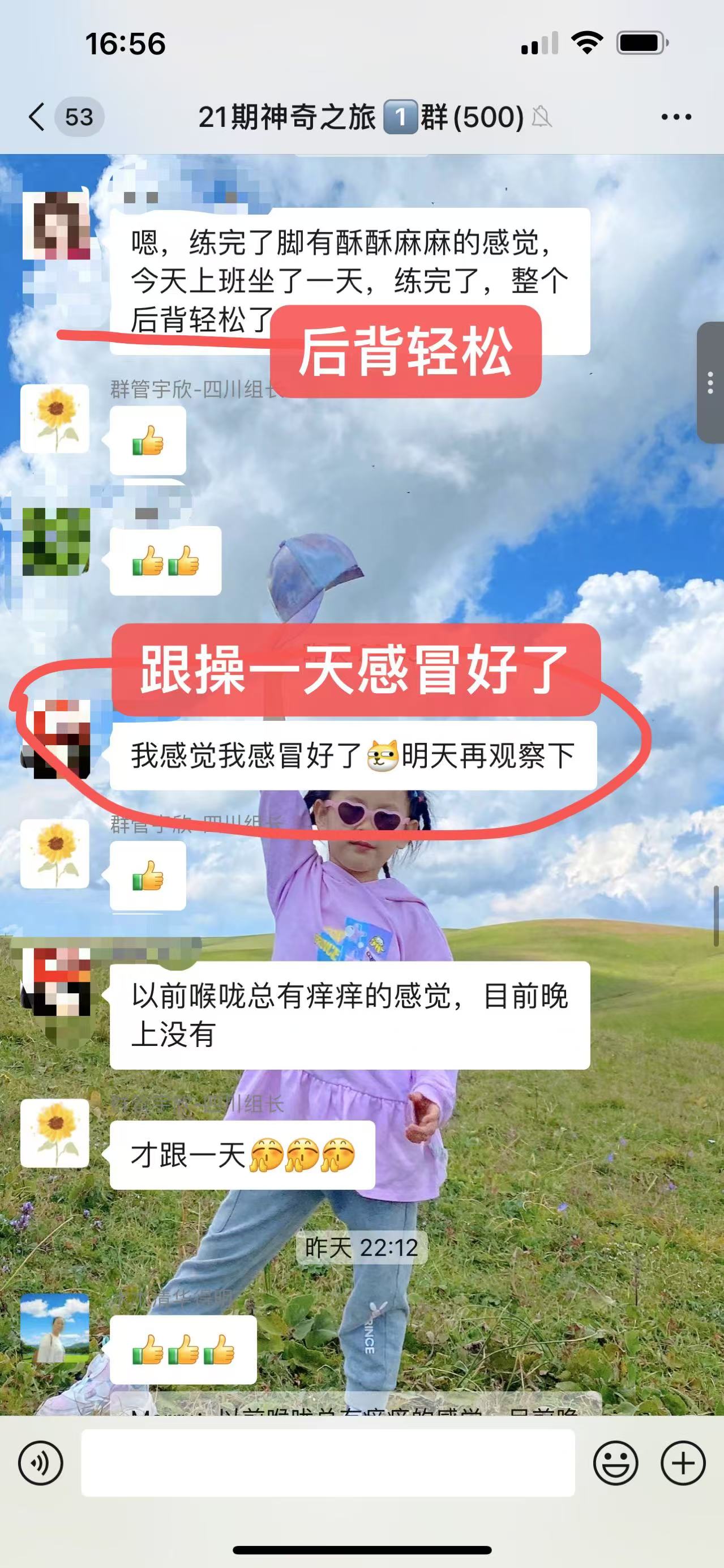 后背轻松,跟操一天感冒好了