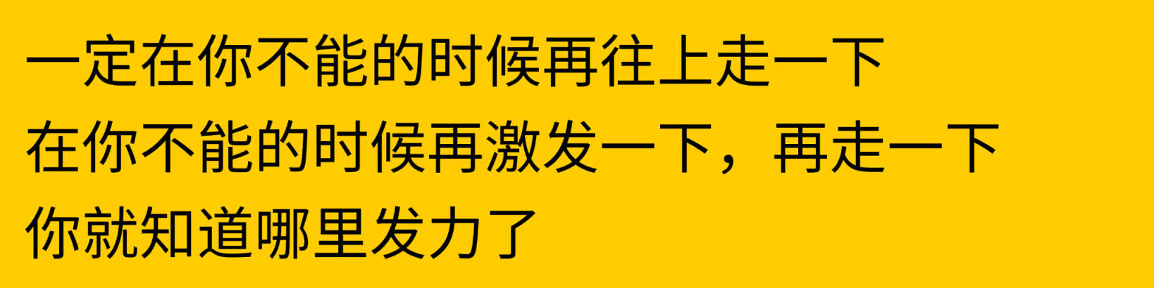一定在你不能的时候再往上走一下,在你不能的时候再激发一下,再走一下,你就知道哪里发力了
