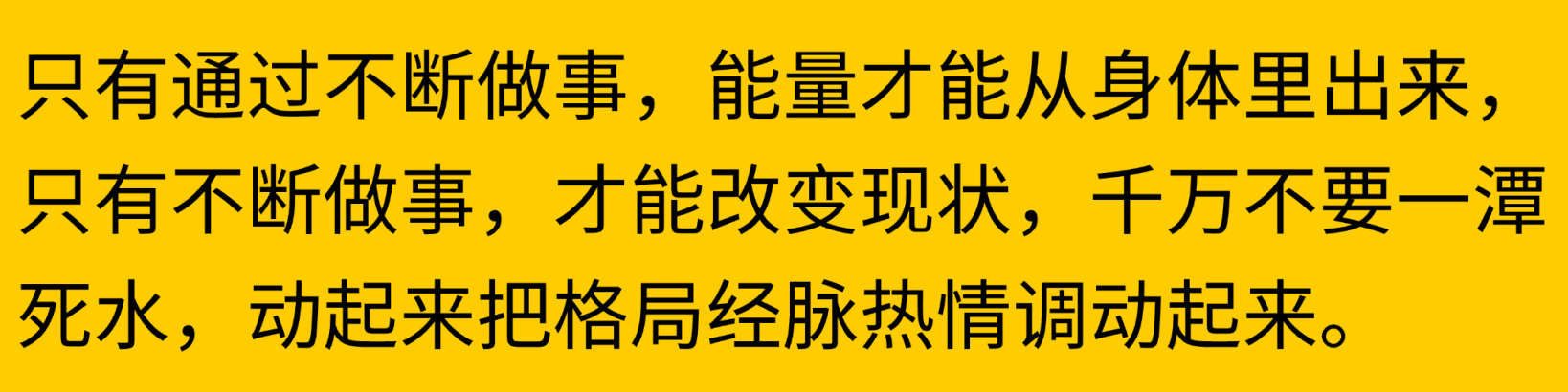 师:只有通过不断做事,能量才能从身体里出来,只有不断做事,才能改变现状,千万不要一潭死水,动起来把格局经脉热情调动起来,不要怕消耗,掌握节奏,阴阳的做事,所有的消耗都会转化成能量