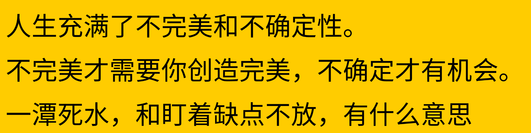 师:人生充满了不完美和不确定性。不完美才需要你创造完美,不确定才有机会。一潭死水,和盯着缺点不放,有什么意思