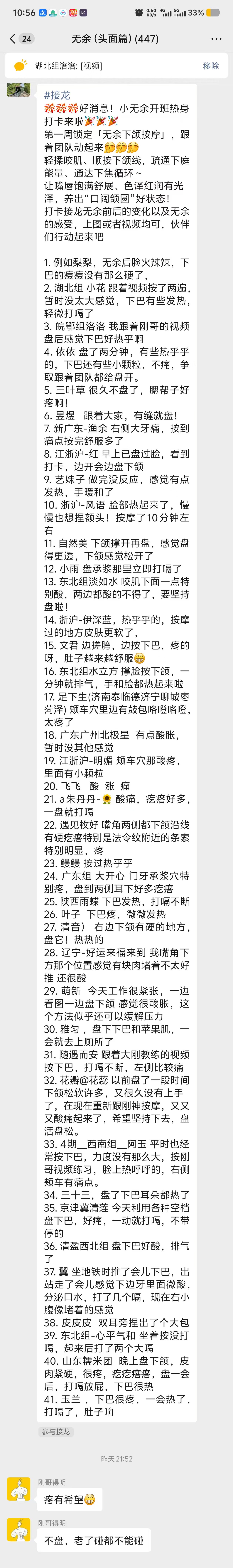 20251126小无余开班热身打卡第一周:无余下颌按摩(颊车穴酸痛,疼,有颗粒感,打嗝不断,盘热乎了,上厕所) https://dmjs.info/m/dv_topic/view.asp?id=10472381&t=1764759614
