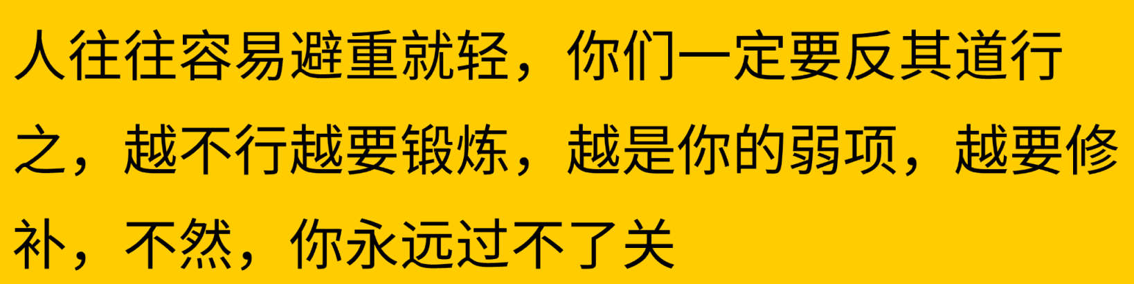 师:人往往容易避重就轻,你们一定要反其道行之,越不行越要锻炼,这是第一。