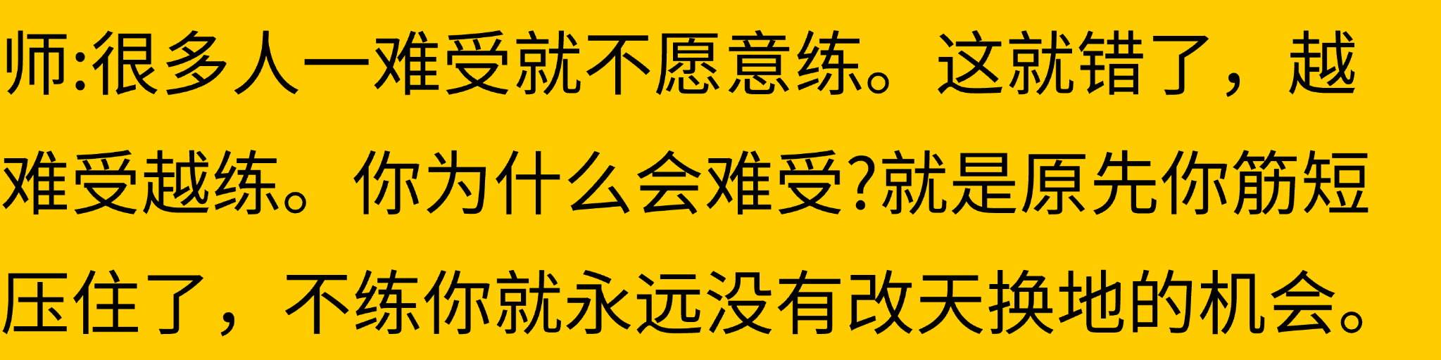 师:很多人一难受就不愿意练。这就错了,越难受越练。