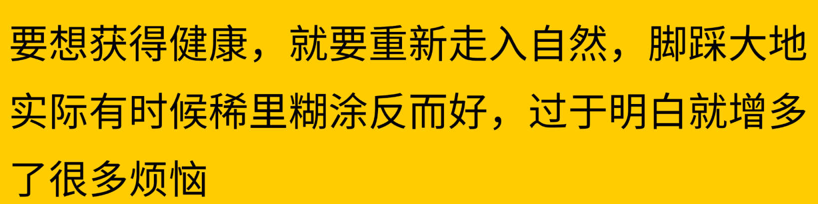 师:要想获得健康,就要重新走入自然,脚踩大地。实际有时候稀里糊涂反而好,过于明白就增多了很多烦恼。