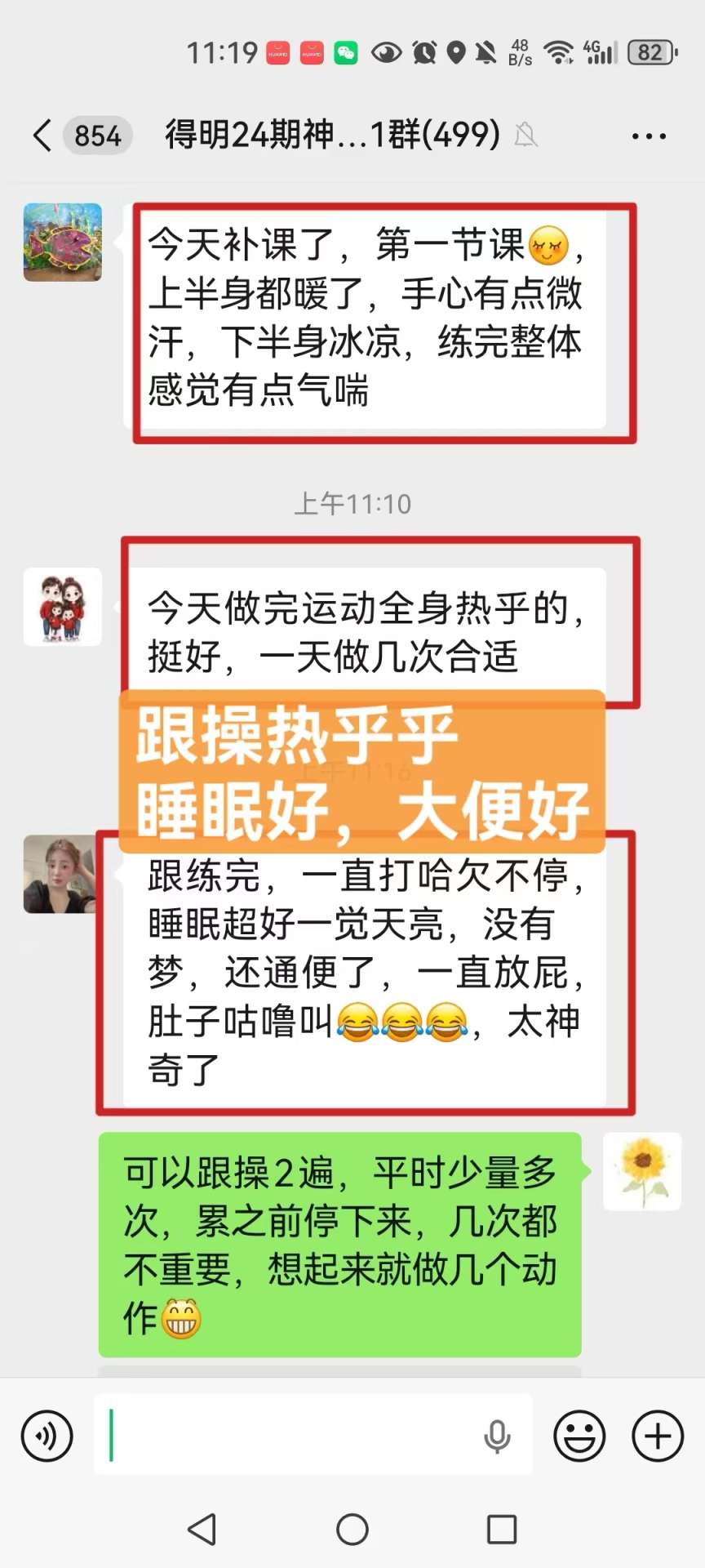 跟练完,一直打哈欠不停,睡眠超好一觉天亮,没有梦,还通便了,一直放屁,肚子咕噜叫[破涕为笑][破涕为笑][破涕为笑],太神奇了。 查看得明学习引导>>