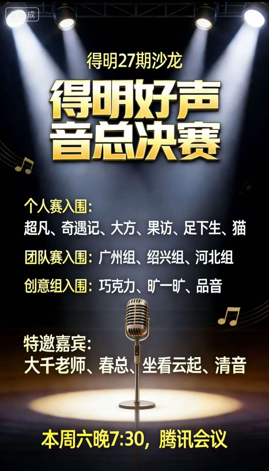 会员沙龙属于大家的舞台,无论你想化身策划智囊,勾勒活动创意蓝图;还是争当主持达人,掌控全场的节奏氛围;亦或成为分享嘉宾,输出你独到的见解展示才能;不同角色不同体验,在实践中锻炼能力,绽放自我。欢迎更多伙伴加入会员沙龙,共赴这场关于热爱与精彩的相聚。 沙龙时间:每周六19:30 沙龙直播:得明APP 查看得明学习引导>>