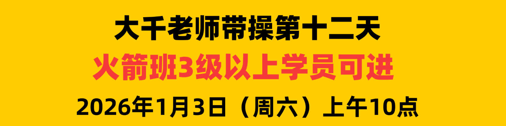 2026年1月3日(周六)上午10点,大千老师火箭班带操直播链接 https://dmjs.info/m/dv_topic/view.asp?id=11360265&t=1767369894