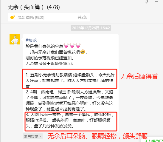 无余跟操,反馈多多(全身热乎、舒服、眼睛亮、皮肤滑、脸色红润、睡得香)