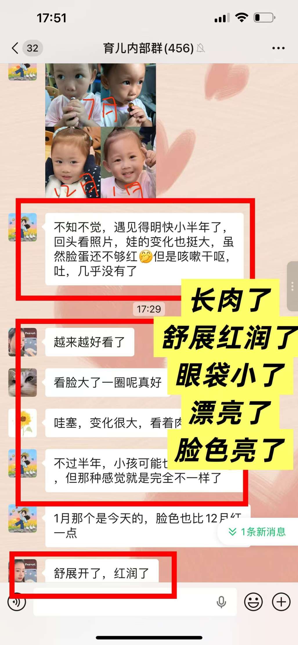 进群4个月,遛娃+产品+饮食调理,长肉了,脸色亮了,眼袋小了,舒展红润了