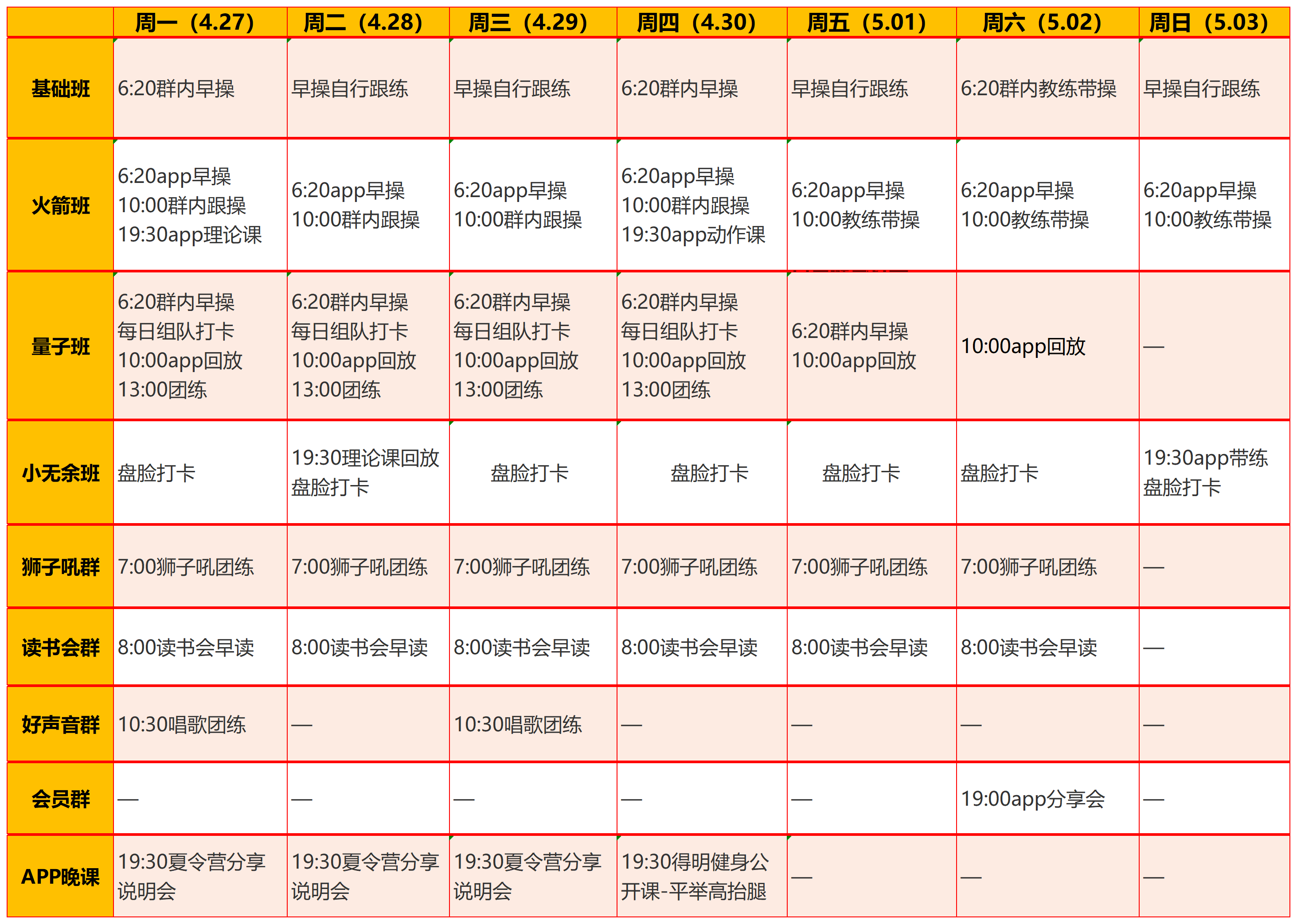 *会员可参加相应或以下级别健身课程,可参加全部活动。有需要请联系本地区组长。