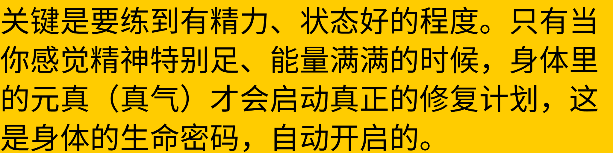 只有当你感觉精神特别足、能量满满的时候,身体里的元真(真气)才会启动真正的修复计划。