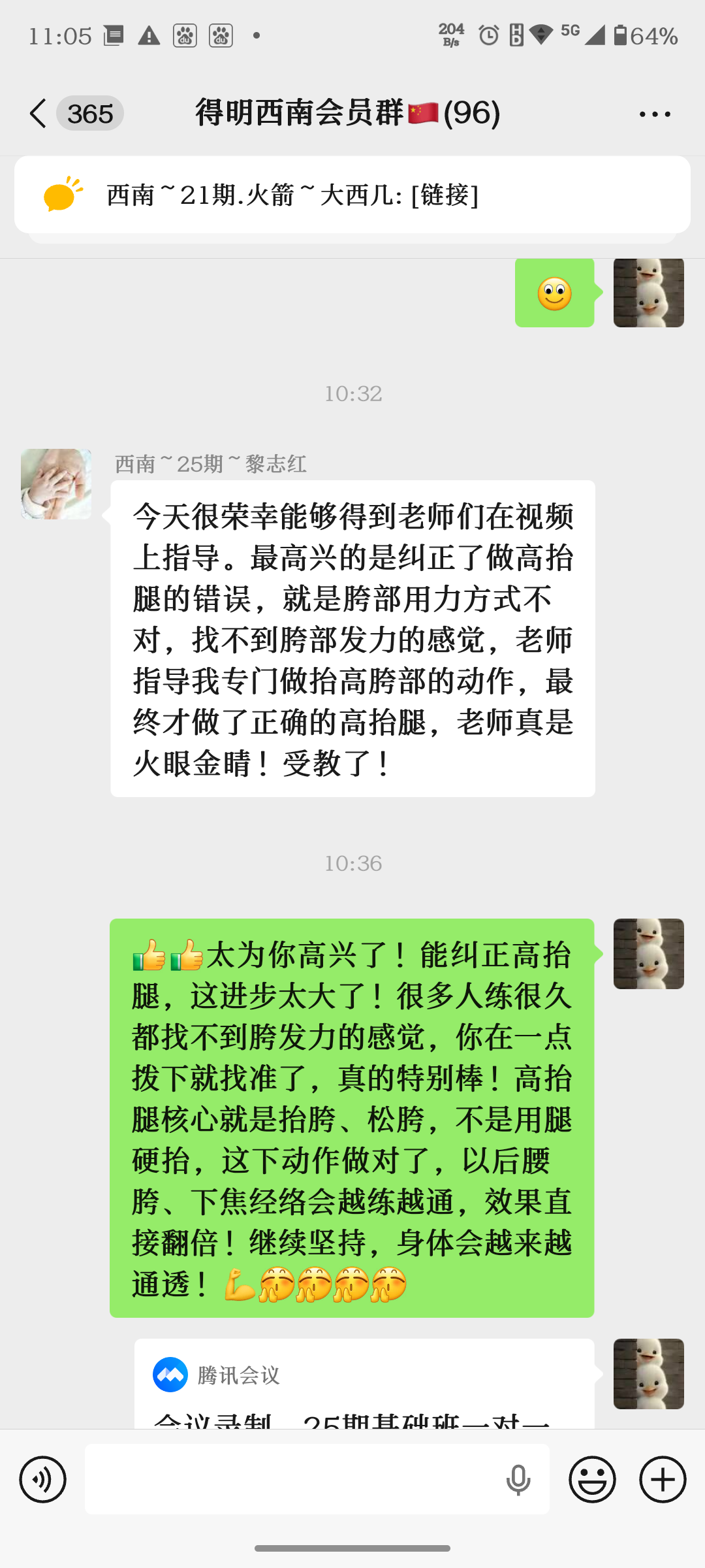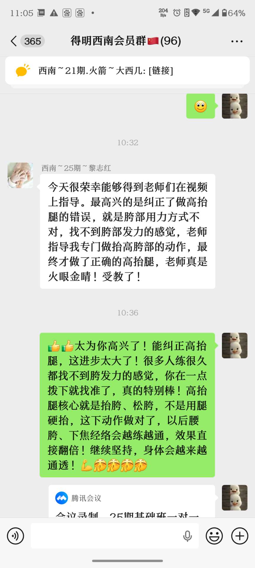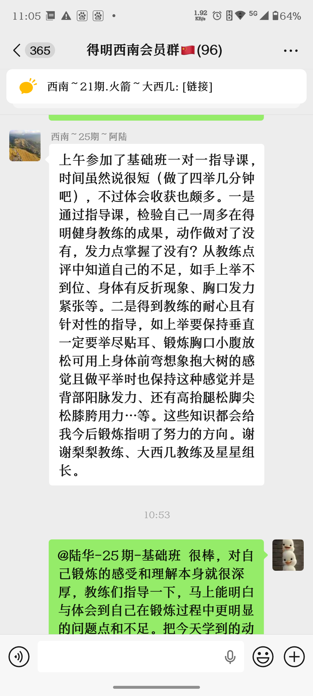 今天中心对我们组陆华和黎志红一对一进行了四举转体和高抬腿指导。下面图片是学员指导后的分享感受