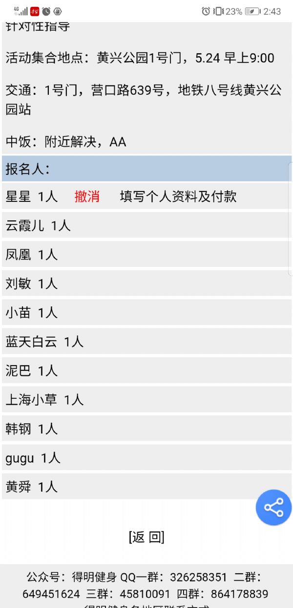活动集合地点:黄兴公园1号门,5.24 早上9:30 交通:1号门,营口路639号,地铁八号线黄兴公园站 中饭:附近解决,AA 会员进以下链接报名,有积分的哦,攒积分,有奖励 http://dmjs.info/m/s_project/view.asp?id=823757 联系人:星星 微信for_ever_star 查看得明学习引导>>