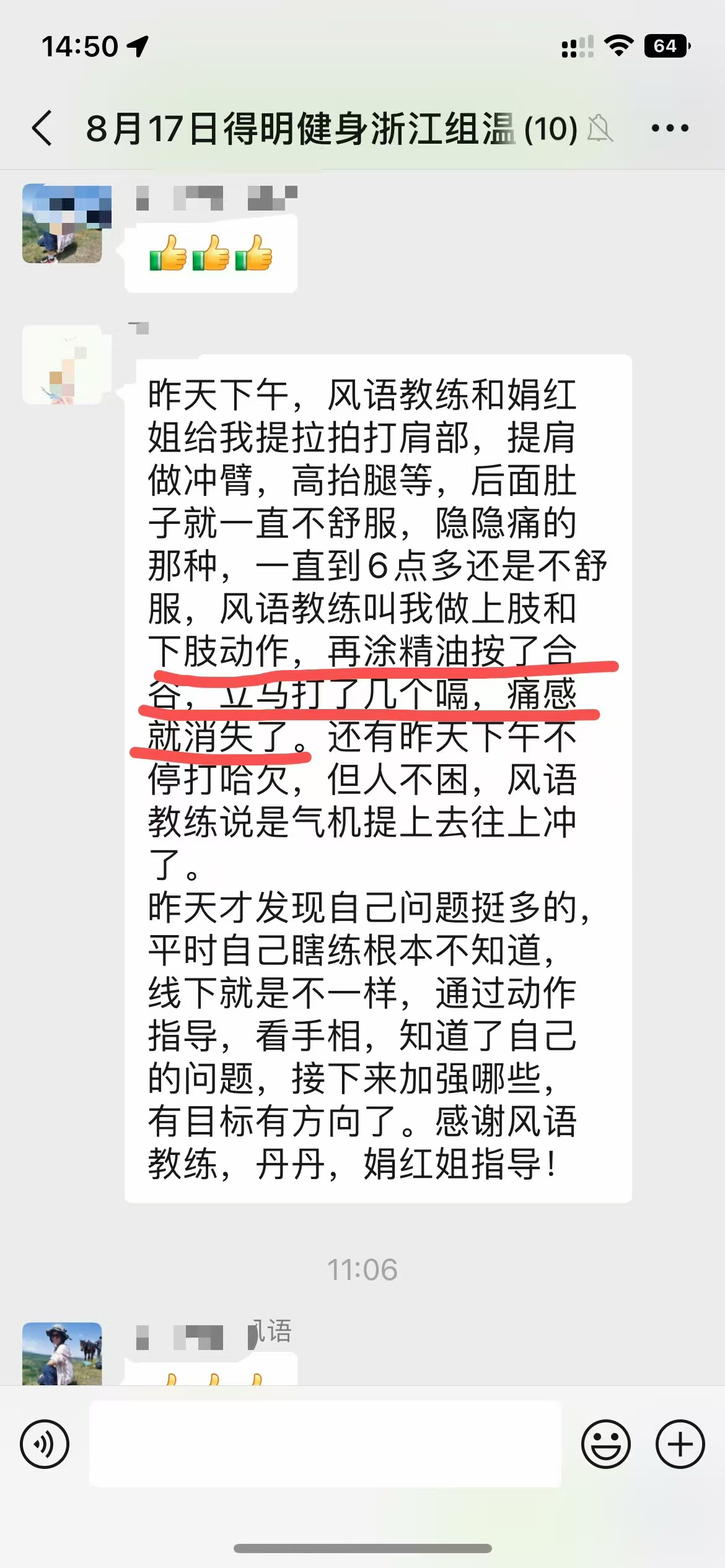 活动:经脉健身交流、开胯、经络拍打游戏、午间看手相、亲子育儿分享