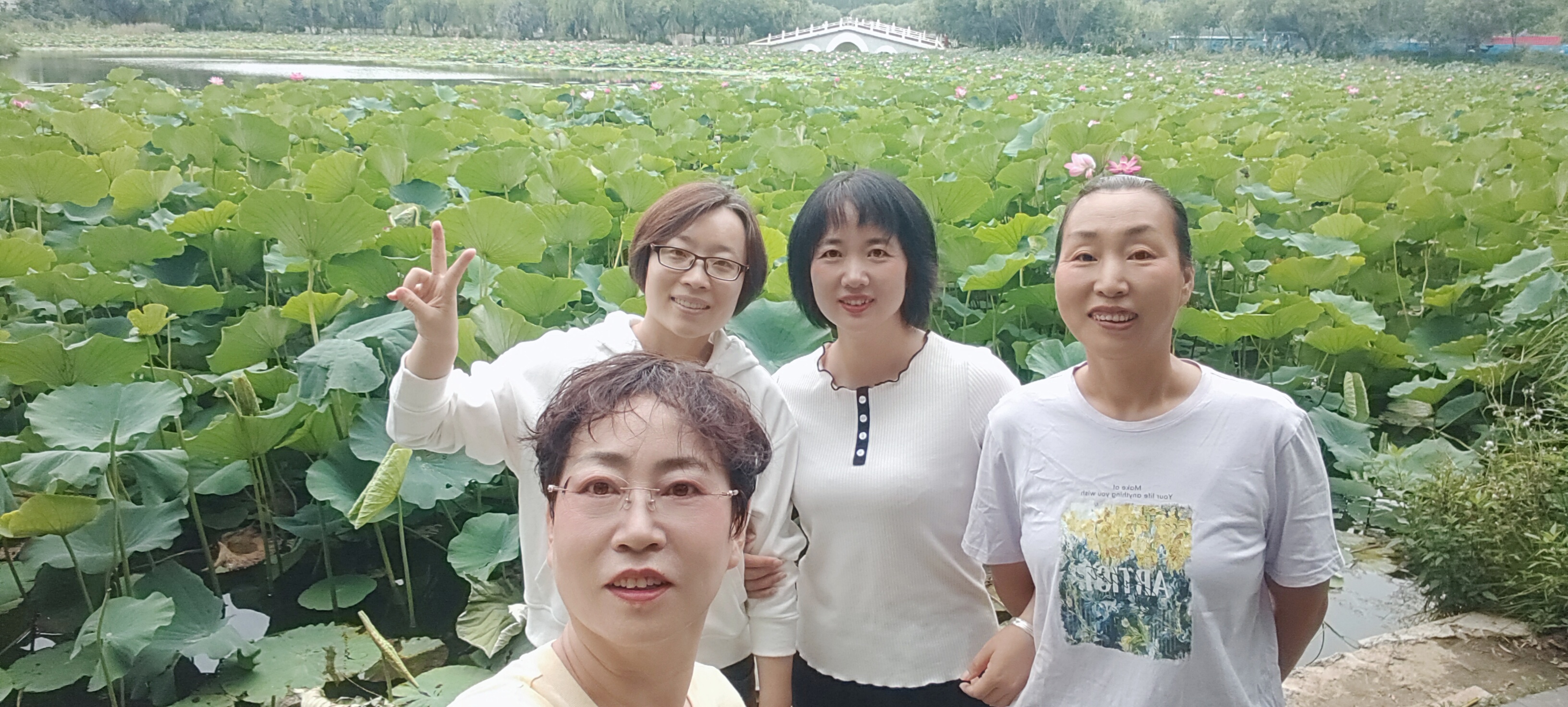 1.一起体验跨步走欣赏公园荷花盛开的美景