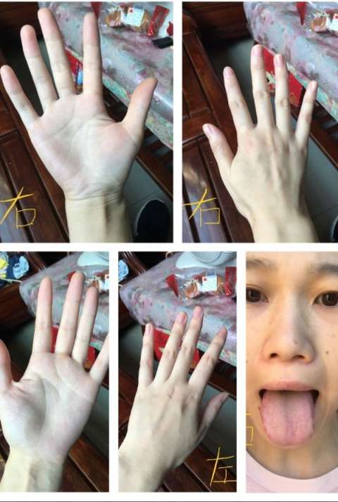 虚峭医师:燕手相,舌相都看了一下,第一感觉最重要一点,还是身体偏虚,容易乏力,整个身体的湿气还稍微有点重。看你的手指虽然平顺还可以,但是太平的也不好,太平了没有曲折度,以曲为美太平了,而且还放点油,不晓得是擦的护肤霜,还是怎么回事。所以有时候一定要问清楚,到底这个手有没有美颜,擦了护肤霜,这个很可能会让我们医生产生错觉,如果是擦了油在上面,那又是两回事。燕的感觉一个身体变虚虚的话,整个抵抗力也不太好,就容易怕冷,看得到手相,舌相都明显感觉到。其中我没仔细看是左手,还是右手,应该是左手的手掌心,看她生命线都断了,大概就是说年纪到了一个程度,有就这方面没衔接上,身体出现问题了。