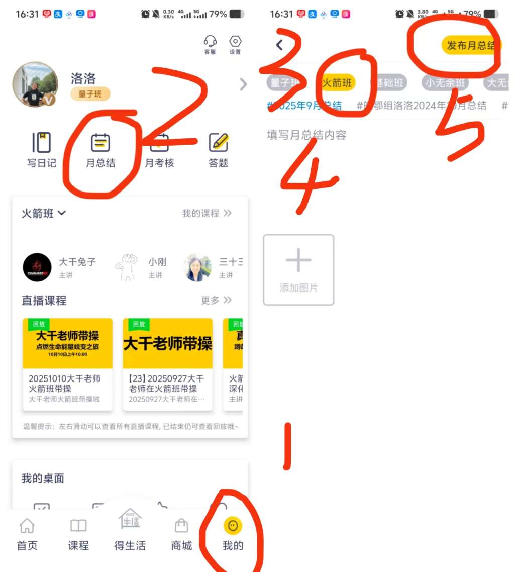 提交方式:得明APP--我的-月总结-写下内容--发布月总结