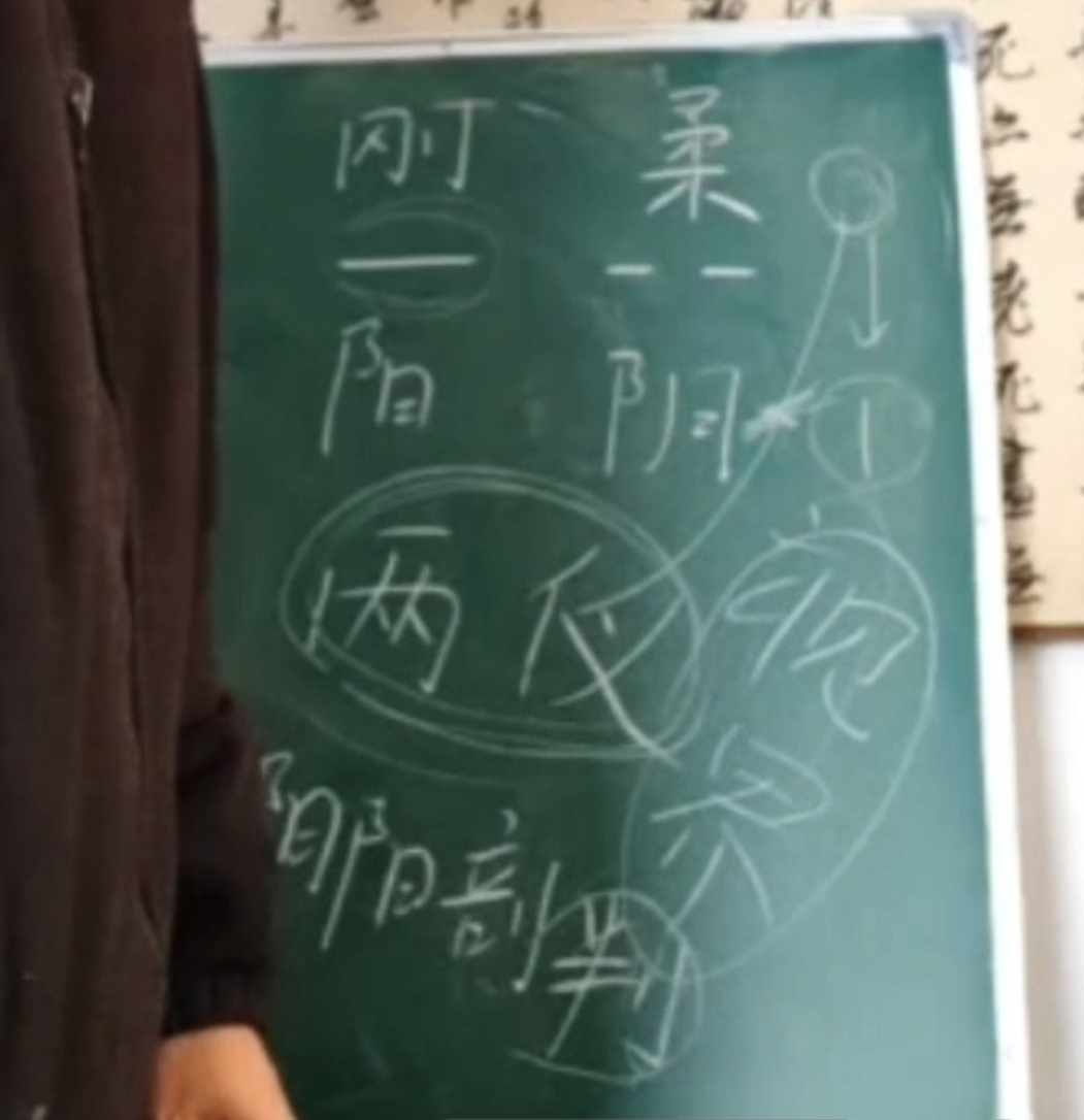 1.无极生太极,无就是0,啥都没有。这了无挂碍,什么都没有。从0到2,必然要经过一个一,这叫太极。什么叫两仪啊?两仪就两边啊,一边阳一边阴。然后突然从两仪,这东西能从无中生出有来就是一,一它不可能单独存在。一微一秒它都存在不了,它必须马上变成两仪(阴阳剖判,一阳一阴,如刀分事物为两半)→四象( 四象基于阴阳的“变化过程”产生,是阴阳转化的中间状态)