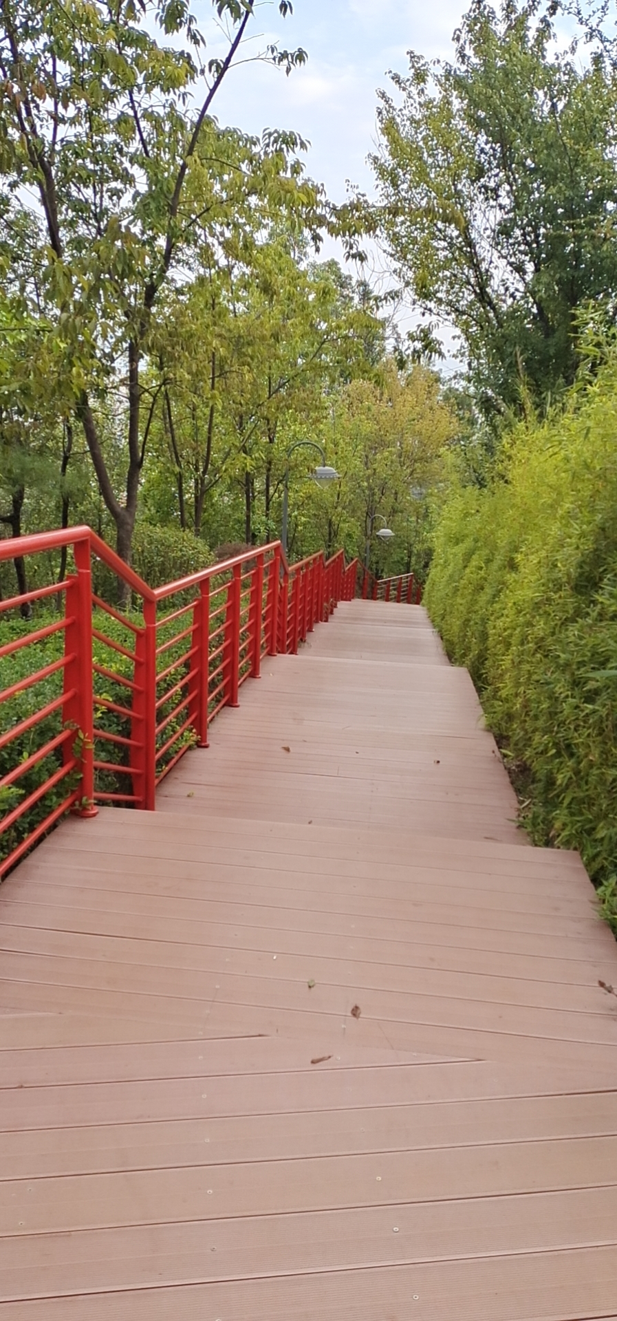 因是假期,不必忙着管儿子的早点,也不忙着送他去学校,早早的起床,要么跟操,要么去山上爬楼梯,爬楼梯是件很漫妙的事,可以放松自如的享受跨步发力的感觉,也可以手扶扶手尽情的做各种拉伸和扭转,还可以大声喊山和尖叫!早早地走进大自然的感觉真好!爬久了,感觉须两层三层的爬才过隐!忽然发现,原来我也是可以这样爬楼梯的!腹股沟的疼痛和左侧心肌周围那块重压的我难喘息的大石板,好像略隐略现了。这样野蛮而轻松的爬楼梯的样子!终于让老公有些安慰和佩服了!