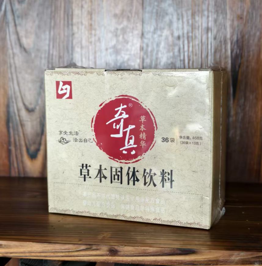 新批次9月到库,按顺序发货 到期日期:2027年9月28日, 到期日期:2027年9月28日, 到期日期:2027年9月28日 奇真(固体饮料)36袋/盒 新包装 配料表:枸杞、山药、橘皮、薏米、茯苓、木瓜、甘草、昆布、酸 枣仁、玉竹、黄精、桔梗、杏仁、黑芝麻、菊花、百合、麦芽、香 橼、生姜、紫苏籽、火麻仁、人参、肉桂、花椒、二氧化硅。 保质期:24个月 净含量:36袋X13克 储藏方法:置于阴凉避光干燥处,避免阳光暴晒。 食用方法:取本品一小袋(13克),加入适量热水搅拌均匀,即可饮用。 具体用量请加客服微信咨询:dqzhuli3 奇真简介 奇真是一款立足于日常养生的通用款复合草本植物产品,属于固体饮料类食品。它以补益身体为主,侧重激发身体能量,适合工作压力大,运动少,容易累的亚健康人群。同时可以作为健身伴侣,及时补充运动中消耗的能量。有“能量棒”的美称。 应对问题 (1.)感冒发烧 ①小孩发烧咳嗽,可以用奇真加三克桂枝。同时,可以配合无余抓背,推大椎以及提捏前额。 (2.)出汗问题 ①人在夏天很热的时候出汗是正常的,也会感到有些没劲儿。如果出汗特别特别多就不正常了,不过还得看每个人的具体的情况和其他的问题,奇真是补充能量的,能量足了,自然就不觉得没劲儿,而且能量足了才能收得住汗。 (3.)肠胃问题 ①胃胀,又容易上火。可以喝奇真,喝了之后打嗝放屁,把淤滞的气机搅动起来,排出体外。同时,可以试试揉按合谷穴,推推小腿外侧的“阳明沟”,配合四举转体以及三压。 ②小儿积食,可以喝奇真,陈皮水冲奇真一起喝,效果更好。同时,可以揉按合谷穴。 ③胃反酸,可以喝奇真,喝的时候泡点陈皮。同时要配合健身,做做转体、侧弯、“开贝壳”、“畅气操”。 ④感觉心口堵,能喝奇真,可加清半夏六克,橘皮六克,效果更好。同时,可以揉按内、外关穴,并且练练四举转体和立式拉腹。 ⑤肚子痛、胃胀不舒服,能喝奇真,可加桂枝、枳实各三克,效果更好。同时,可以试试揉按合谷穴,推推小腿外侧的“阳明沟”,还可以练练上举高抬腿。 (4.)月经问题 ①很多女生,喝完奇真之后下了很多血块,这是好现象,这些血块在肚子里都是淤血,排出来顺畅了,所以痛经可以得到有效的缓解,是大大的好现象。盆腔积液、子宫肌瘤、卵巢囊肿多少都是气虚、血寒气郁、淤血内停,把这些脏东西都排出来,对身体大有好处。因此,饮用奇真可以有效缓解痛经的症状。 (5.)睡眠问题 ①入睡难、睡不沉,喝了奇真后可以明显改善睡眠。现代人压力大,夜生活丰富等很多因素导致心神不宁,同时腹部深层和下焦淤滞严重,气血不能下沉,上浮于表,从而影响睡眠,奇真有通畅五脏六腑,调达百脉的作用,经脉畅通了,睡眠质量也就提高了。 (6.)亚健康 ①城市白领,不爱运动、身体虚弱、浑身感觉不通畅的亚健康人士,这疼那痒的、浑身无力、没精打采、失眠、痛经、拉肚子、便秘、头疼、身体虚弱一族,还有产后风、怕风怕冷人群。这些情况都比较适合喝奇真。 常见反应 (1.)头面部 ①喝了奇真上火、咽喉牙龈肿痛、头疼、长痘痘、恶心呕吐、口腔溃疡、痰多。因为,身体里的邪和毒,想去除,就得通路,不是从上边走,就是从下边走,要不就从四肢走,以上症状都是邪气往上发,一个个都想拱出去。喝了奇真上火的,都是肚子里太不通了,奇真的能量下不去,马上给顶上来了,所以不用担心,继续喝,奇真有通肚子的效果,慢慢肚子通了,就不会有上火的现象了,能量就都进去了。 ②喝了奇真后,上眼皮肿得厉害。如果之前不肿,最近开始肿了,大概是因为奇真的能量到身体里散不开,聚在上焦心肺,就表现为上眼皮肿 ,主要是在发肺胃的邪,是好的现象,继续喝,消得快。 ③喝了奇真,嗓子疼,吞口水都疼。此时,可以继续喝,适当减量,配合锻炼。通了,就不疼了。 (2.)肠胃 ①喝了奇真,胃胀、胃疼、拉肚子。这说明肠胃系统非常差,奇真在帮忙做梳理。火麻仁有润肠通便的作用,很多人拉肚子,觉得是这味药导致的,其实不是,这是奇真的整体能量在帮助攻邪。当身体受寒或有郁结时,邪气停留在腹中,如果不能及时排出体外,会慢慢形成淤堵结节。奇真温经通脉,如正人君子,进去就把邪气赶走,邪气以拉肚子的形式出去,这是好现象。要看拉完是否舒服了。 ②喝完奇真后,二便通畅。这是因为肺与大肠相表里,中医认为肺张开了,大肠就张开了,奇真里有紫苏籽、火麻仁、桔梗、杏仁,在通畅肠胃的同时开肺宣肺,不专注于通便而达到通便的效果。 (3.)月经 ①喝奇真后,会痛经。很多女性之前不痛经,喝了之后会痛经。虽然她不痛经,估计之前例假也不正常,都被邪气压住了,奇真在帮她打通淤滞,在通而未通的时候就产生疼痛,这都是好现象。坚持服用,会有改善。 ②喝了奇真后,月经停了。喝了奇真,突然便秘或者停经,都是推动了邪气,邪气顶在下边,出不去,就像推箱子推到门口一样,不要害怕继续喝,推出去就好了。 (4.)睡眠 ①喝了奇真后失眠。本来奇真有助眠的效果,如果失眠,说明能量下肚之后与邪气打起来了,身体里面不消停,顶着就睡不着觉,这时候别害怕,坚持喝,等奇真把经脉打通,自然倒头就能睡。 ②以前喝奇真大汗淋漓,最近喝了嗜睡。这是因为之前不通,奇真的能量往外走,所以出汗,现在里面通了,能量直接进去了,往里面走,气往下沉,所以嗜睡,是好的现象,继续坚持喝,效果会更好。 (5.)精力 ①本来奇真能量下肚,